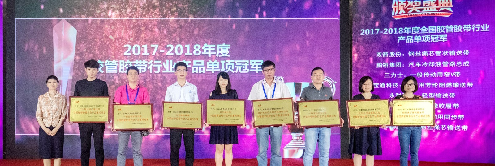 作為中國橡膠工業協會副會長單位、膠管膠帶分會理事長單位,雙箭股份始終牢記行業使命、追求品質,一直致力于綠色環保節能產品的開發創新,引領行業發展未來,連續八年位列“中國輸送帶十強企業”之首,公司研發的鋼絲繩芯管狀輸送帶榮獲“2017-2018年度膠管膠帶行業產品單項冠軍”。